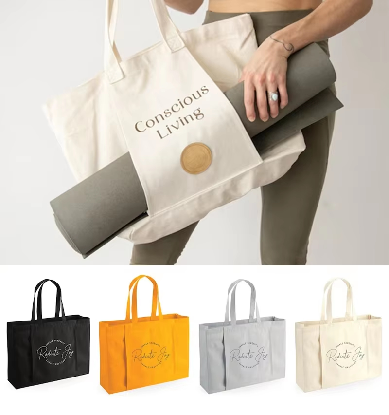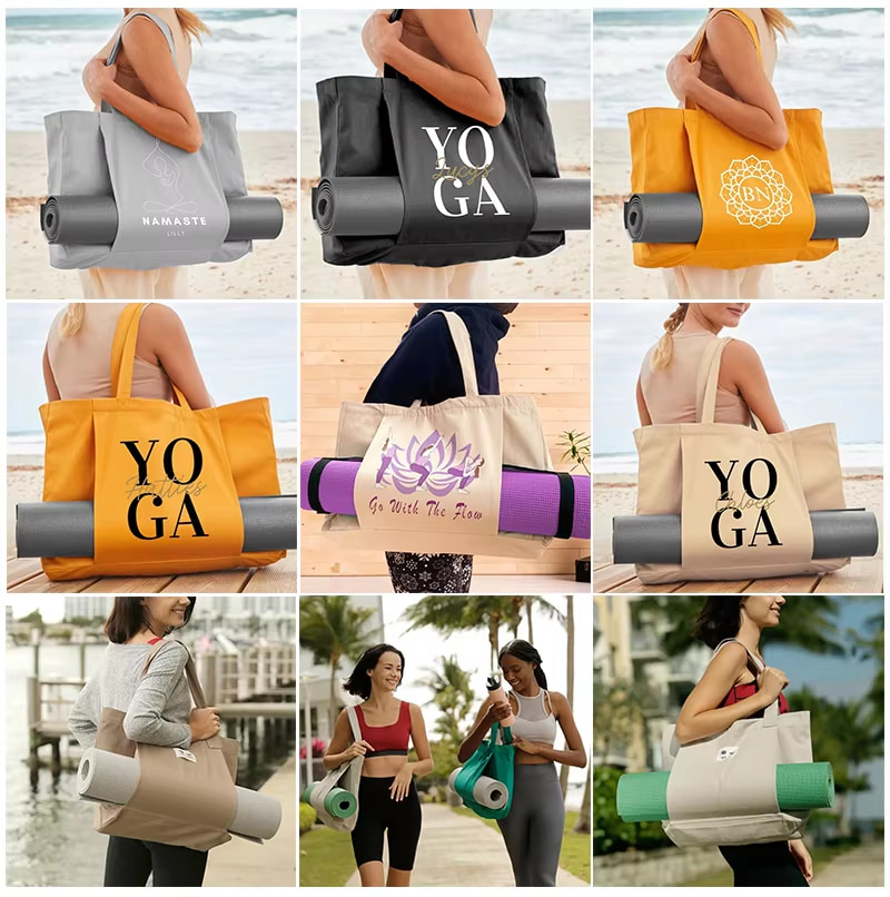 Transportiere deine Yoga-Utensilien stilvoll mit unserem Individuell gestaltbare Yoga-Tragetasche aus Baumwoll-CanvasDiese große Tragetasche aus strapazierfähigem, umweltfreundlichem Baumwoll-Canvas bietet viel Platz für Ihre Yogamatte, Wasserflasche, Handtuch und andere persönliche Gegenstände und eignet sich daher perfekt für Kurse, Trainingseinheiten im Fitnessstudio oder Freizeitausflüge.